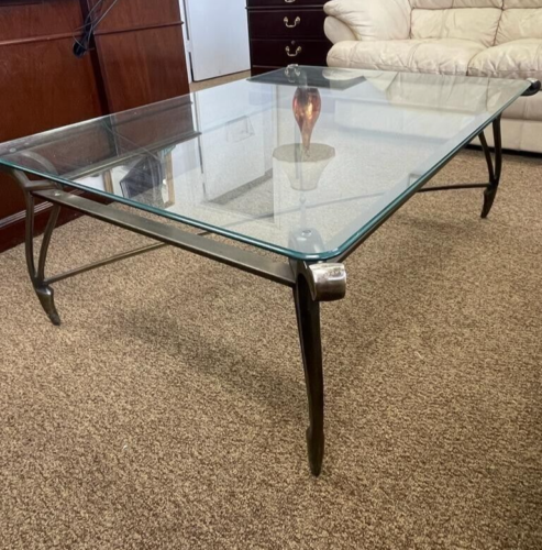 HerdzcoWarehouseThis Vintage Metal Framed Coffee Table features a stunning glass top, offering a touch of elegance to any living space. Gently used, it is the perf...